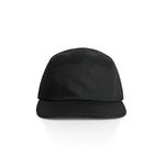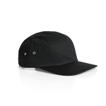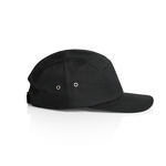 Low profile five panel cap, Adjustable plastic fastener, metal side eyelets. Mid weight, Flat Peak, 100% cotton. One size fits all